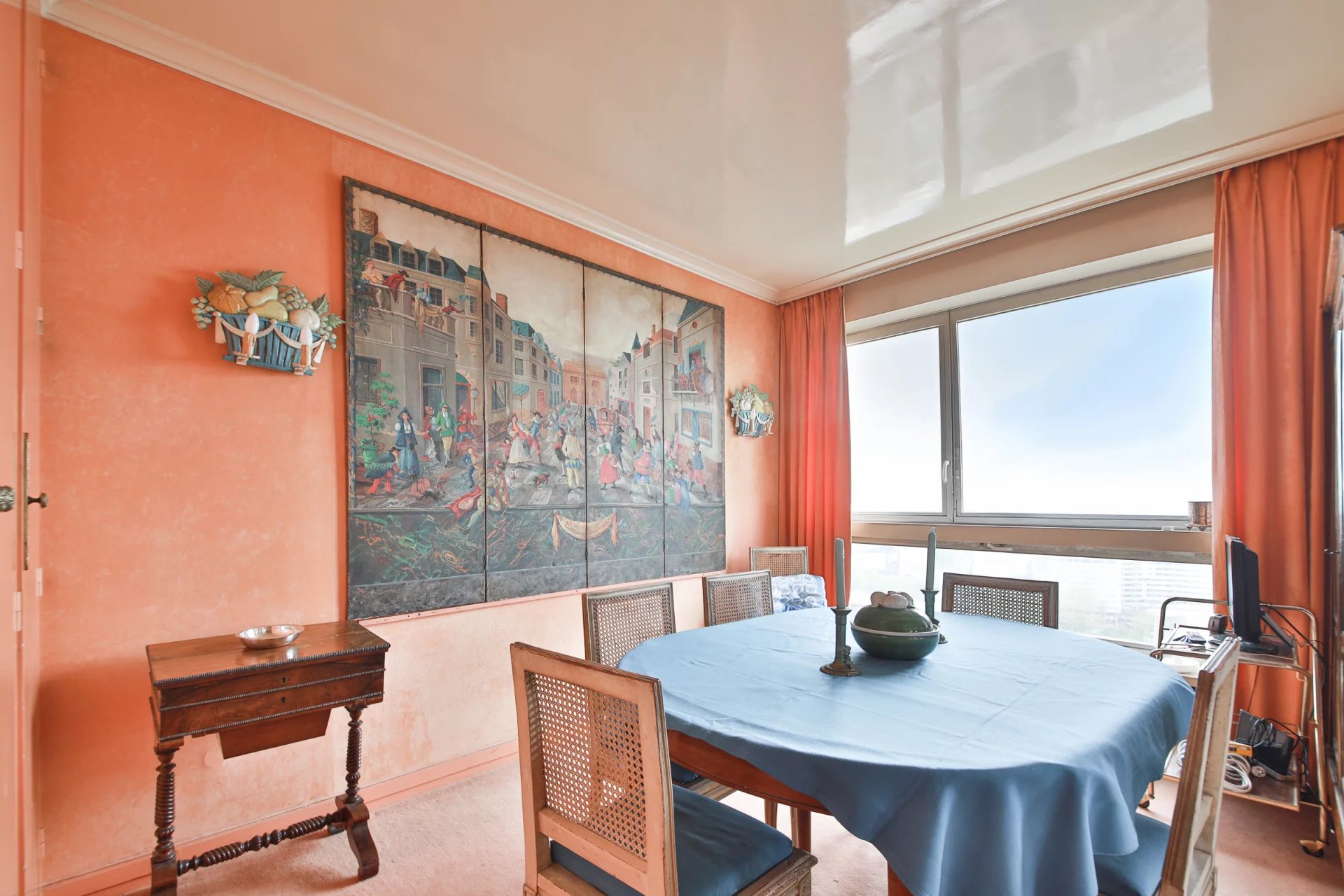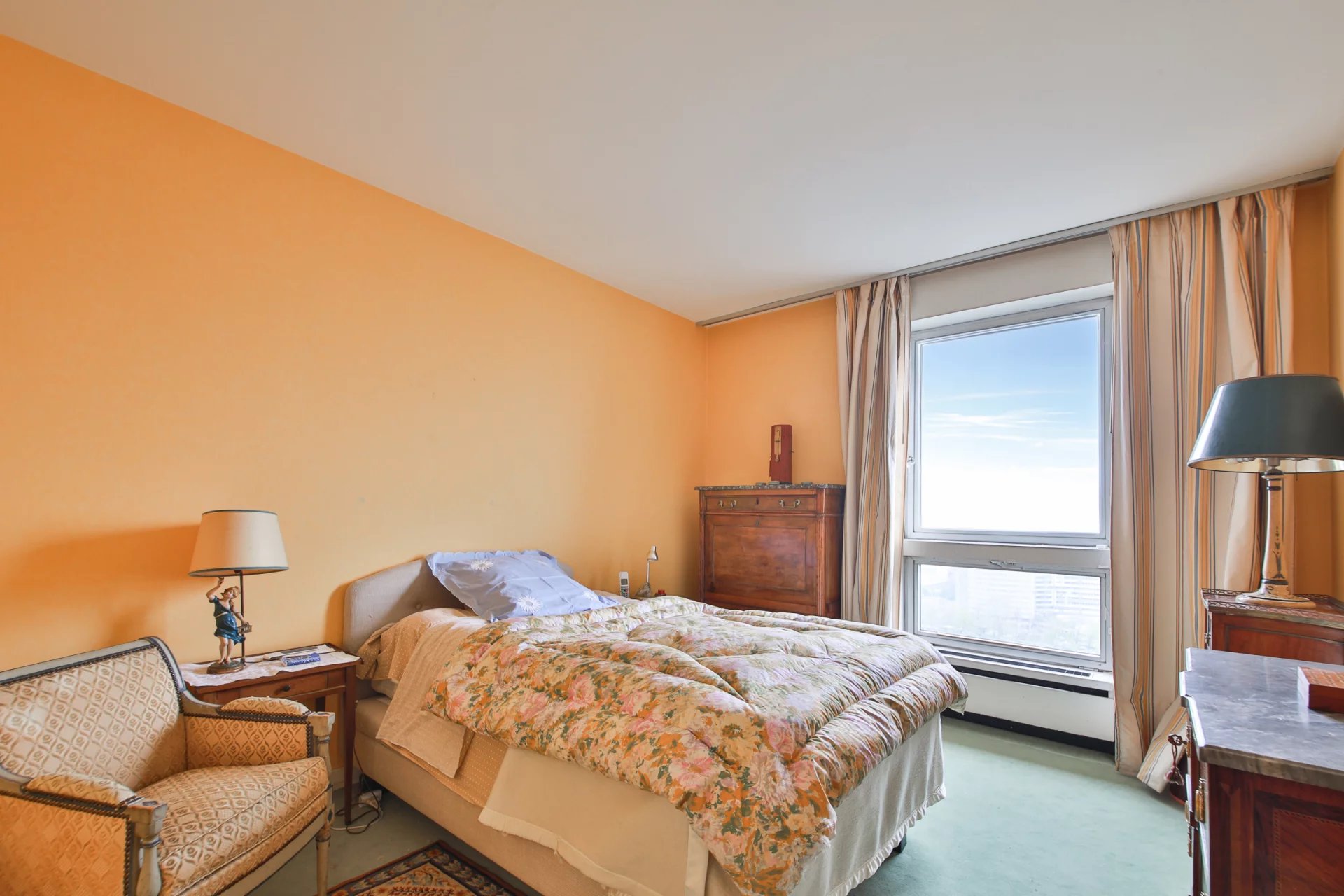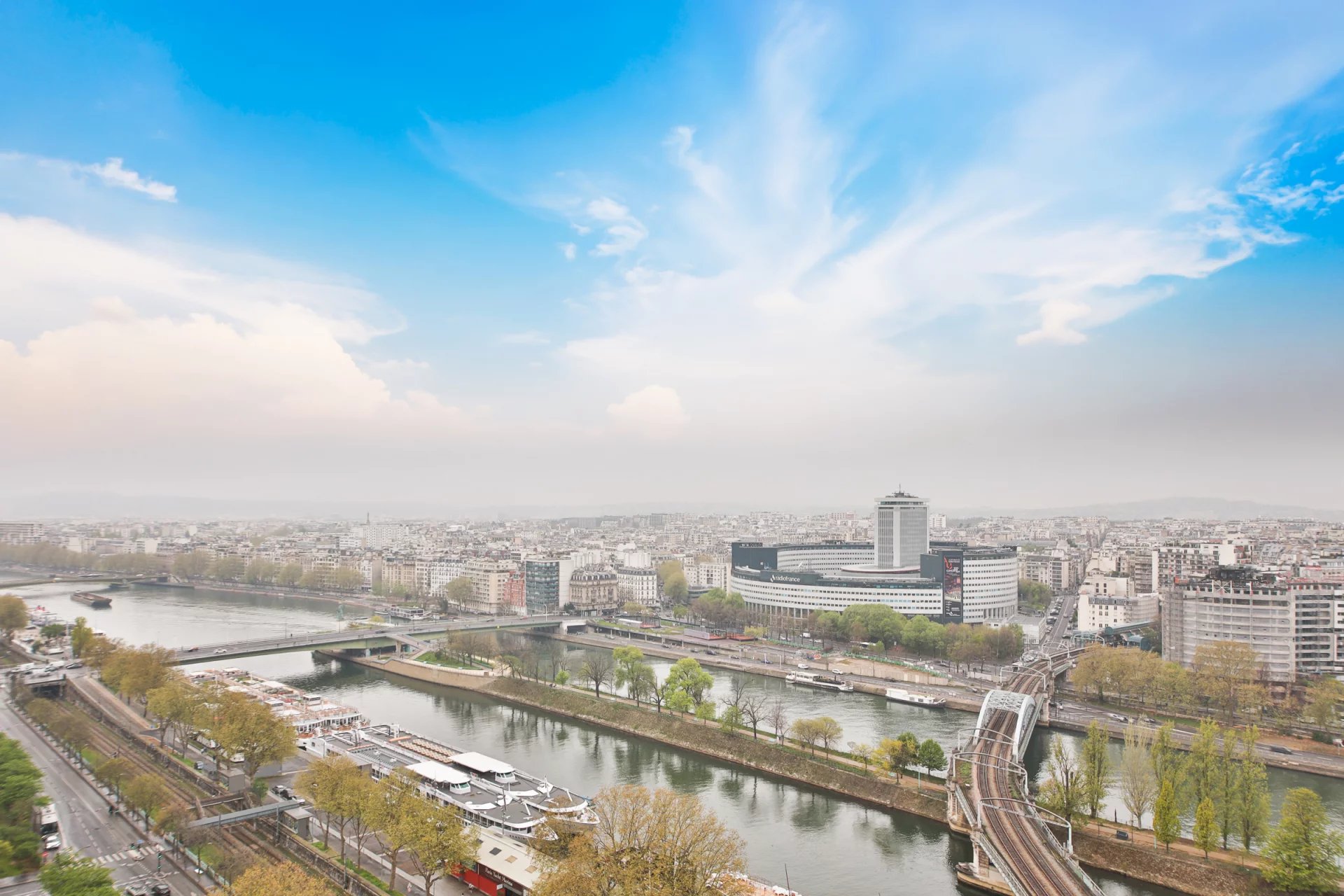 Tour du Front de Seine en étage élevé avec vue exceptionnelle sur la Tour Eiffel et la Seine, nous vous proposons un ensemble rare et modulable : un appartement familial de 115 m² auquel est attenant une studette de 17 m², offrant une surface totale de 132 m².